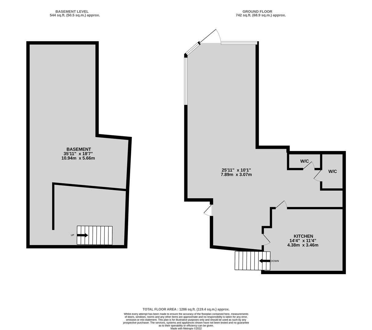 Corner unit of approximately 740 sq ft arranged as cafe/restaurant with fitted kitchen and customer toilets. In addition there is a basement which provides storage of approximately 544 sq ft.