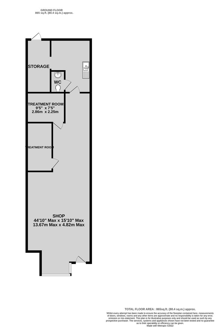 Ground floor retail unit of approximately 865 sq ft benefiting from forecourt and rear access. the shop comprises an open plan customer serving area with adjoining treatment rooms, rear storage, Kitchenette and WC. The property would suit a variety of uses within the E use class, subject to consents.