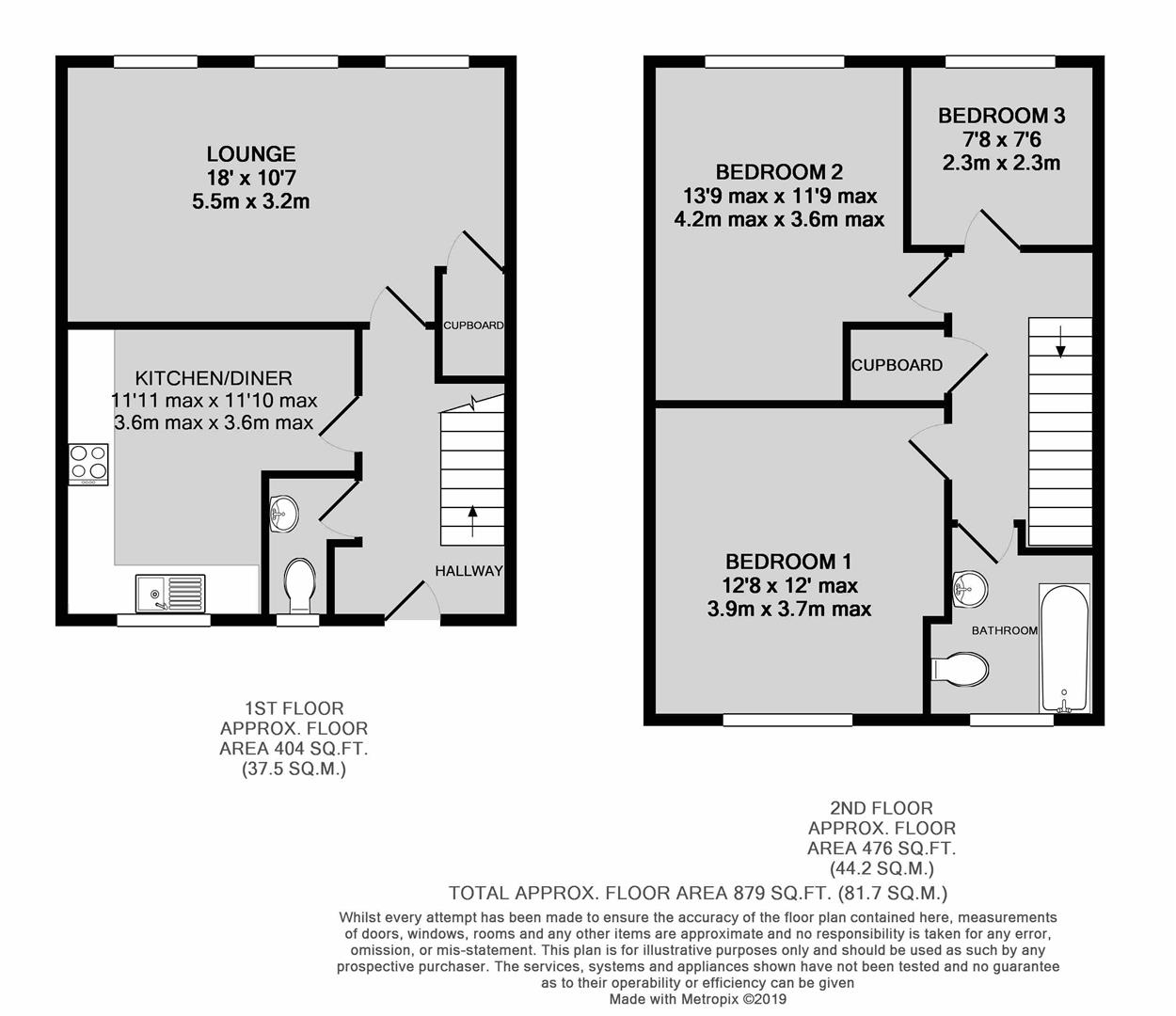 The property is accessed via a communal entrance with stairs leading to the first floor. The first floor comprises a lounge, separate kitchen/diner and a cloakroom whilst the second floor provides 3 bedrooms and a bathroom.