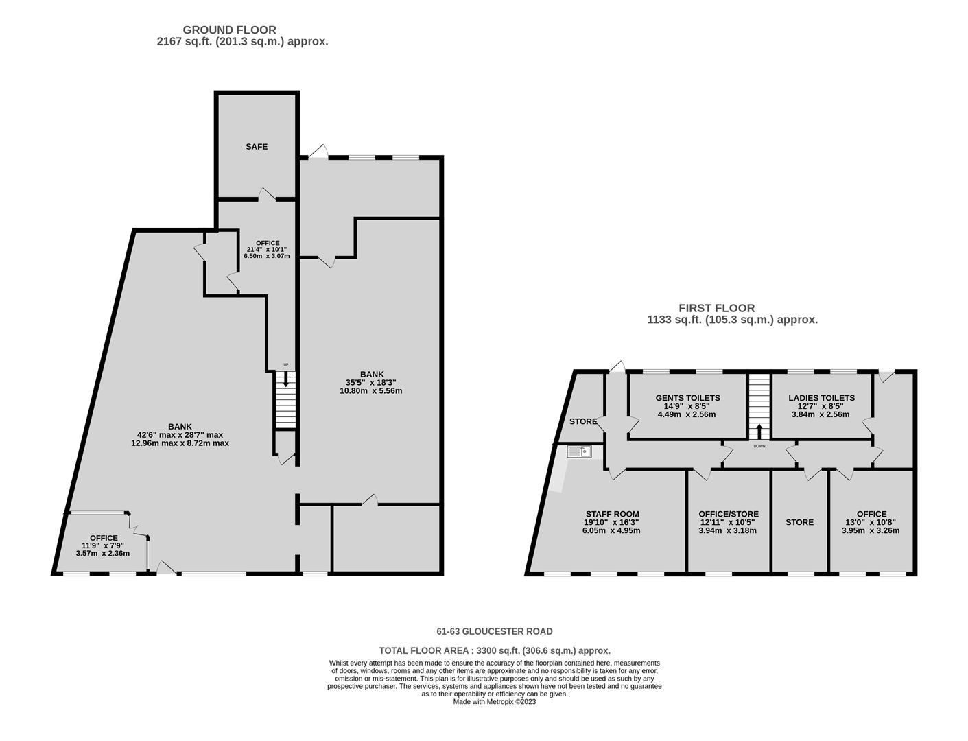 Arranged to provide two large banking areas, various offices and a safe.