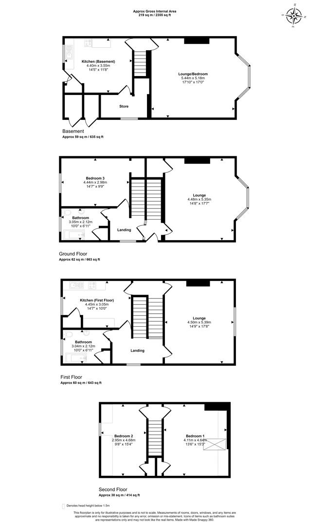 The lower ground floor is currently arranged to provide a kitchen/breakfast room with door onto the rear garden, a large bay-fronted lounge/bedroom and store rooms. The ground floor comprises of a lounge, double bedroom and bathroom. The first floor provides a further lounge/bedroom, kitchen and bathroom. The second floor is arranged as two further double bedrooms.