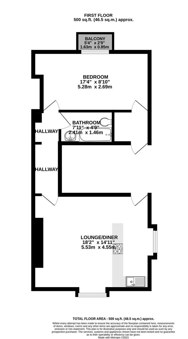 Entering into a dual-aspect kitchen-lounge/diner with high ceilings and some original features including sash windows and cornicing with elevated views of the surrounding area and with a fully-fitted kitchen. From here, through the hallway you will find to your right hand side a well-presented three-piece bathroom with shower-over-bath, and to the rear of the property the bedroom; a comfortable double bedroom with large sash window and balconette. Completing the space is a storage cupboard located off the bedroom which further leads to the communal hallway.