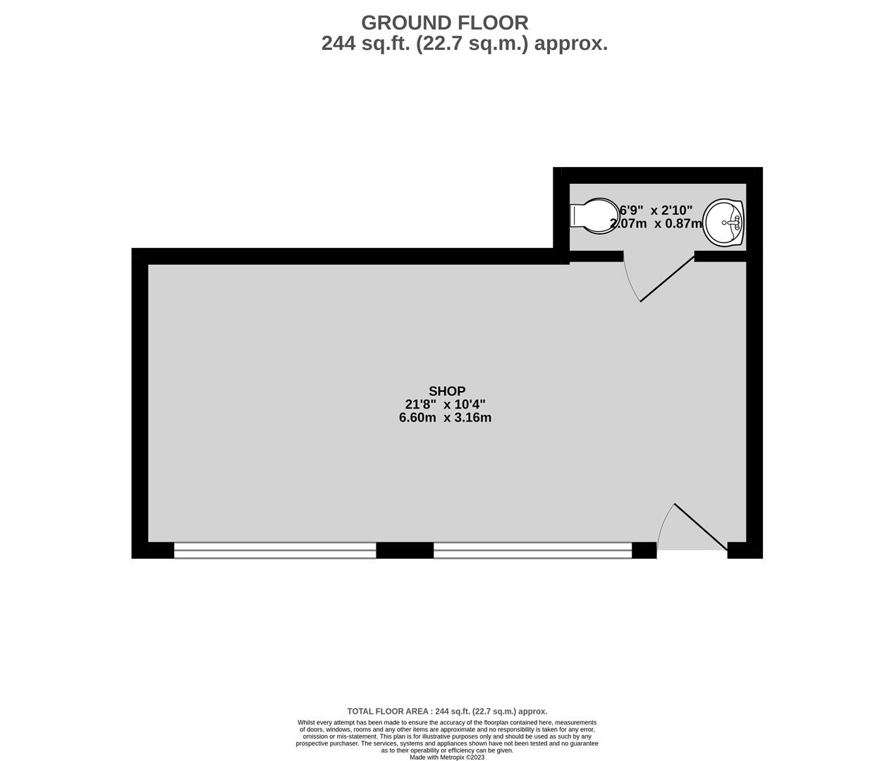 Ground floor commercial investment of approximately 244 sq ft let at a passing rent of £6,500pa on a new 5 year lease from January 2024. The property comprises an open plan shop space with rear toilet facilities.