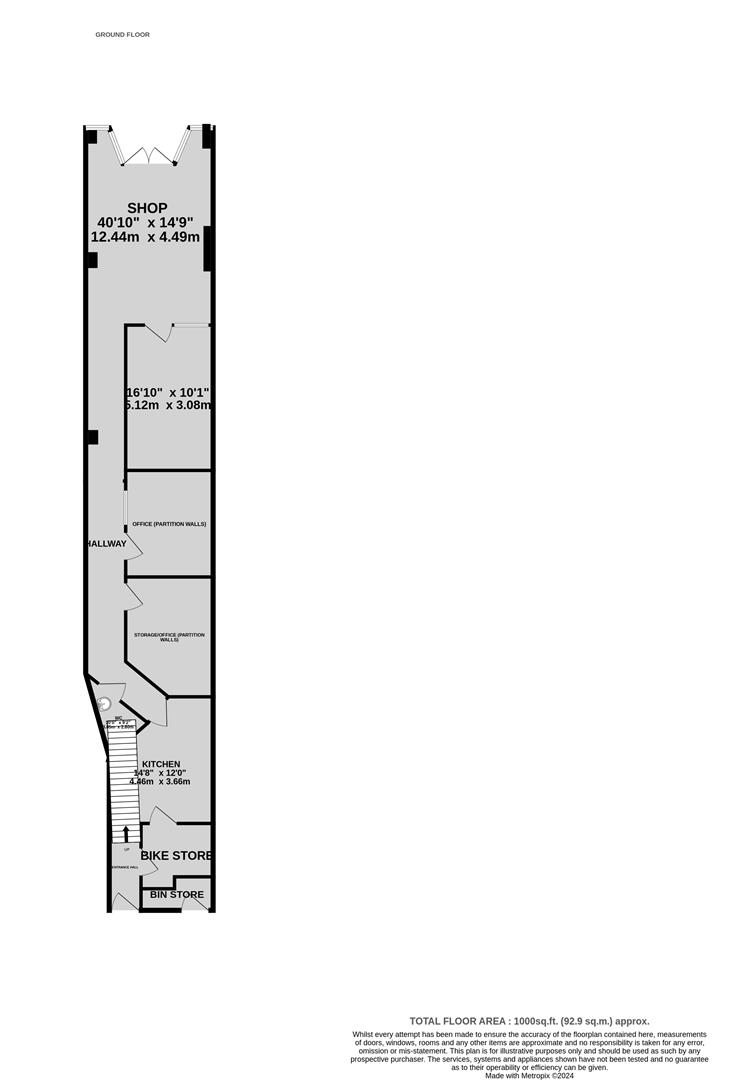 Ground floor shop of approximately 1,000 sq ft. The property is currently arranged as an open plan retail unit with rear treatment rooms/office and store. The rear rooms are partition walls allowing the potential for further retail floor space.