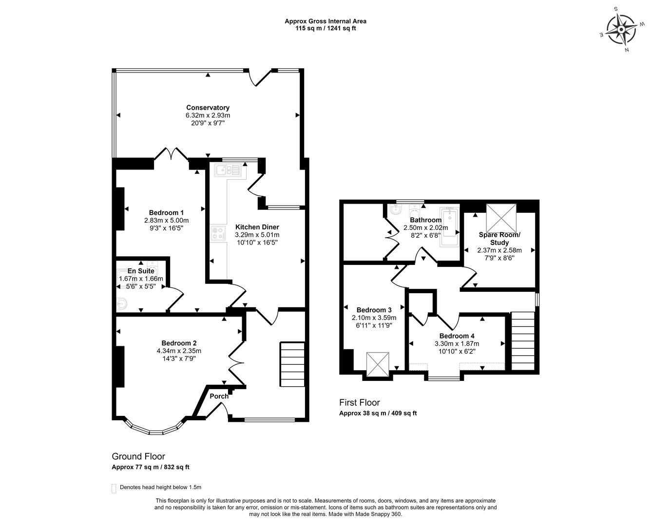 The first floor comprises three bedrooms and a bathroom.