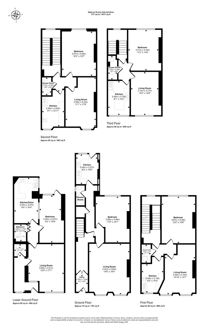 Basement Flat / Ground Floor Flat / First Floor Flat & Top Floor Flat - E