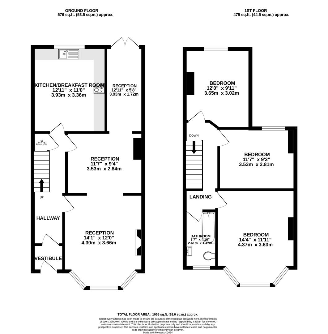 The first floor features three bedrooms, all of which are a good size and including a bay-windowed master bedroom at the front of the property. A three-piece bathroom with shower-over-bath completes this level.