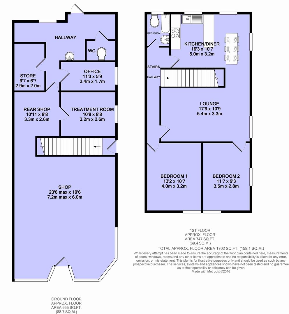 The floor plan is provided for indicative purposes only and should not be relied upon. The shop area has been partitioned to create two separate treatment rooms since the plan was commissioned.