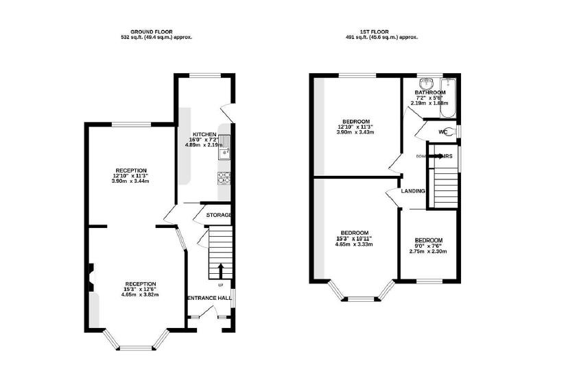 Ascending to the first floor a landing lit by plentiful natural light, you will find the three bedrooms, two comfortable double bedrooms with plentiful built-in storage, and a third bedroom which would make for a perfect children's bedroom or study. The bathroom and WC are split.