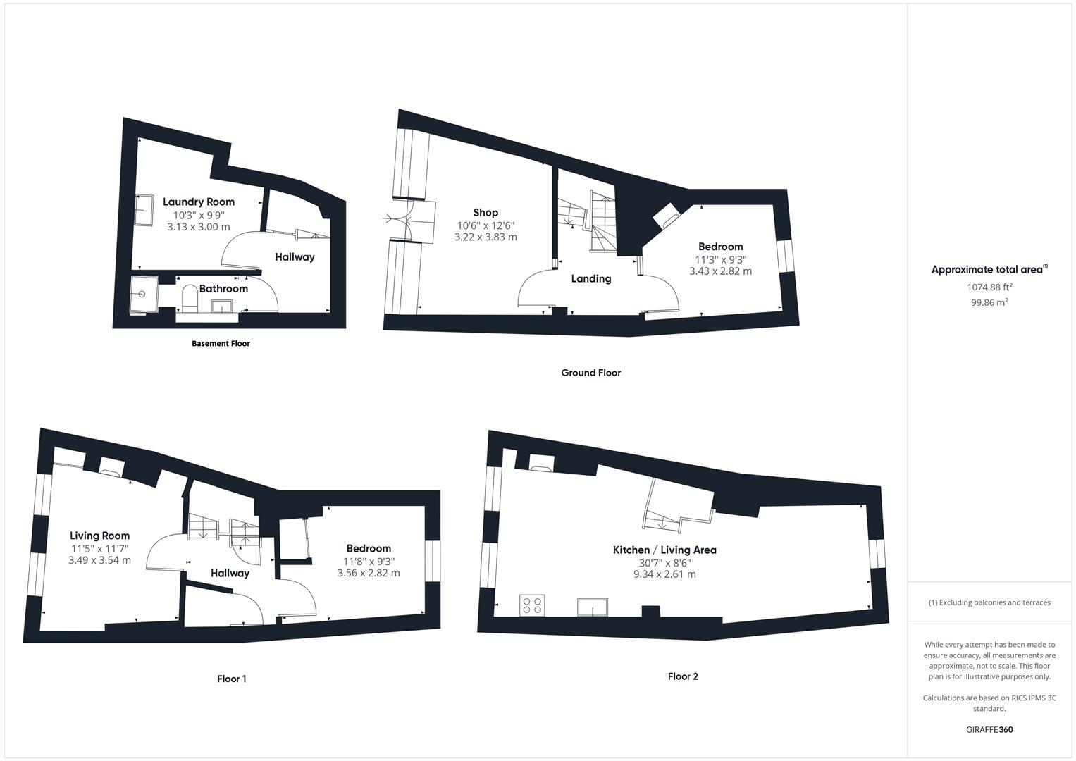 The ground floor comprises a shop/office of just over 130 sq ft,, bedroom and stairs to the first floor living accommodation. The first floor comprises a living room with two sash windows to the front and second bedroom. On the second floor is the kitchen and further living space with stunning views across the city. In addition there is a basement which is arranged as a bathroom and laundry room.