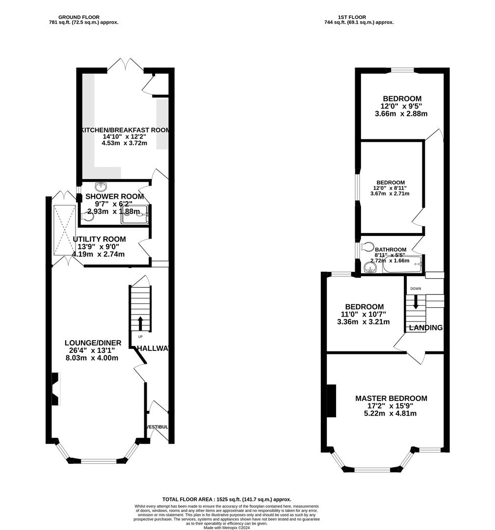 A utility room accessible through original Crittall doors from the lounge, and additionally from the hallway sits adjacent to a ground floor shower room comprising a three-piece suite including WC, basin and shower enclosure.