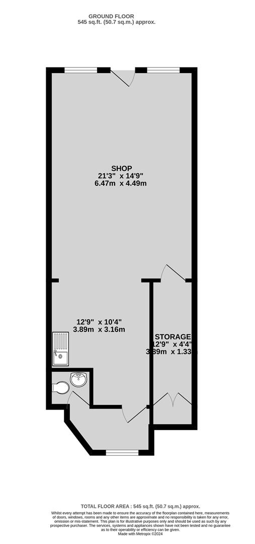 This ground floor retail unit, spanning approximately 545 sq ft, features a front shop area, storage, and toilet facilities. It also benefits from 2 parking spaces at the front. The premises would suit a variety of uses within use class E, subject to consent.