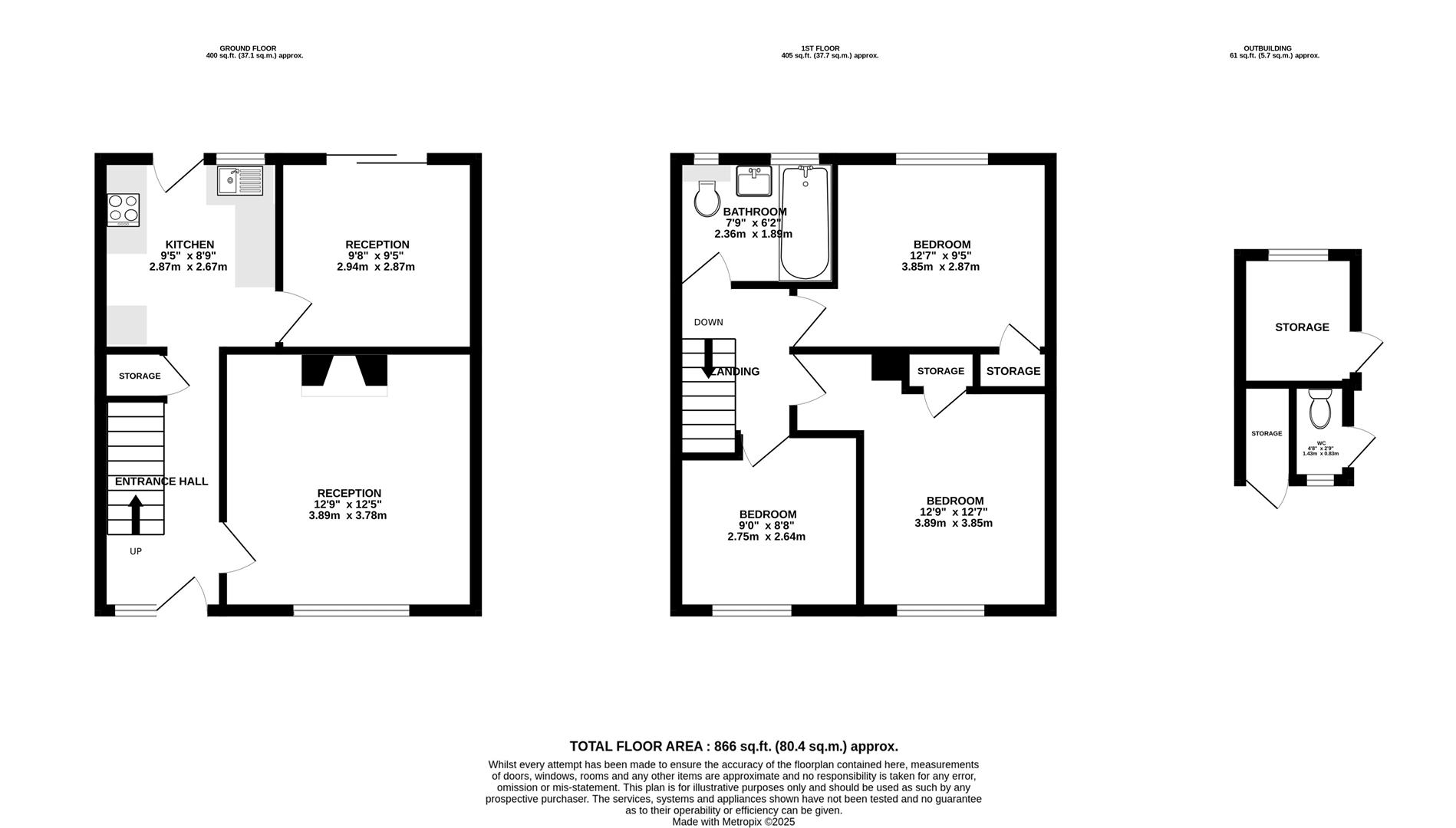 Ascending to the first floor landing, you will find three bedrooms and a bathroom. Both double bedrooms are complete with built-in storage cupboards, with the second bedroom offering far-reaching views of the local area and countryside beyond. The third bedroom is a generous size and could comfortably accommodate a single bed, and could be further utilised as a home office or dressing room. The bathroom is beautifully-fitted with a contemporary three-piece white suite comprising a toilet with concealed cistern, sink with waterfall tap and vanity unit, as well as a large bath with Mira electric shower over. The loft is accessed via a hatch on the landing and houses the gas combination boiler.
