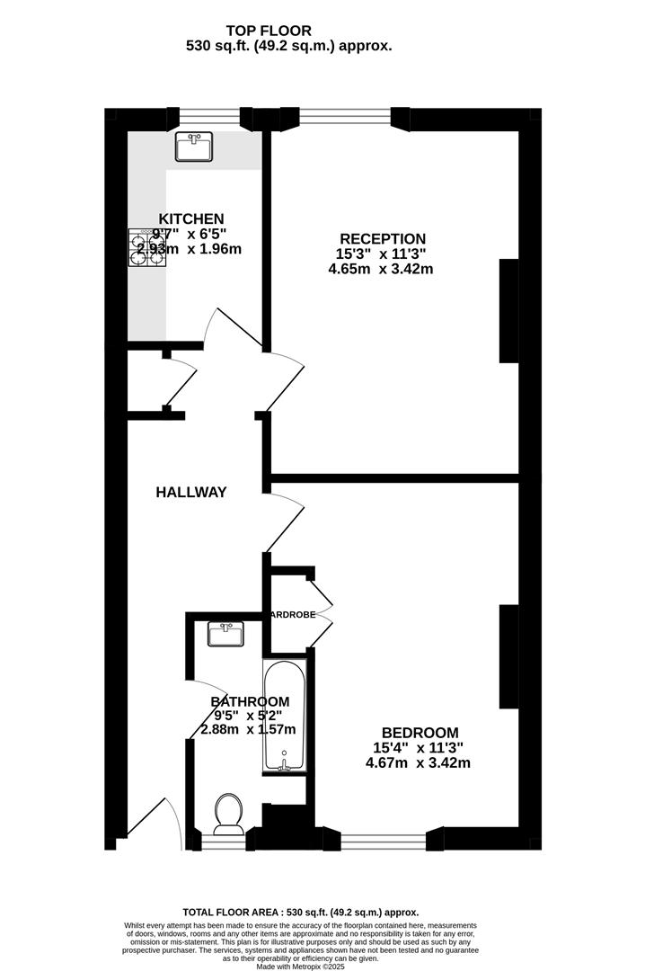 Unlike many one-bedroom flats, this has the benefit of a separate living area and kitchen. The living area benefits from a large sash window inviting in plentiful natural light, feature archway recess and fitted with hard flooring. Adjacent, the kitchen is fitted with a range of matching grey base and wall-mounted units.
