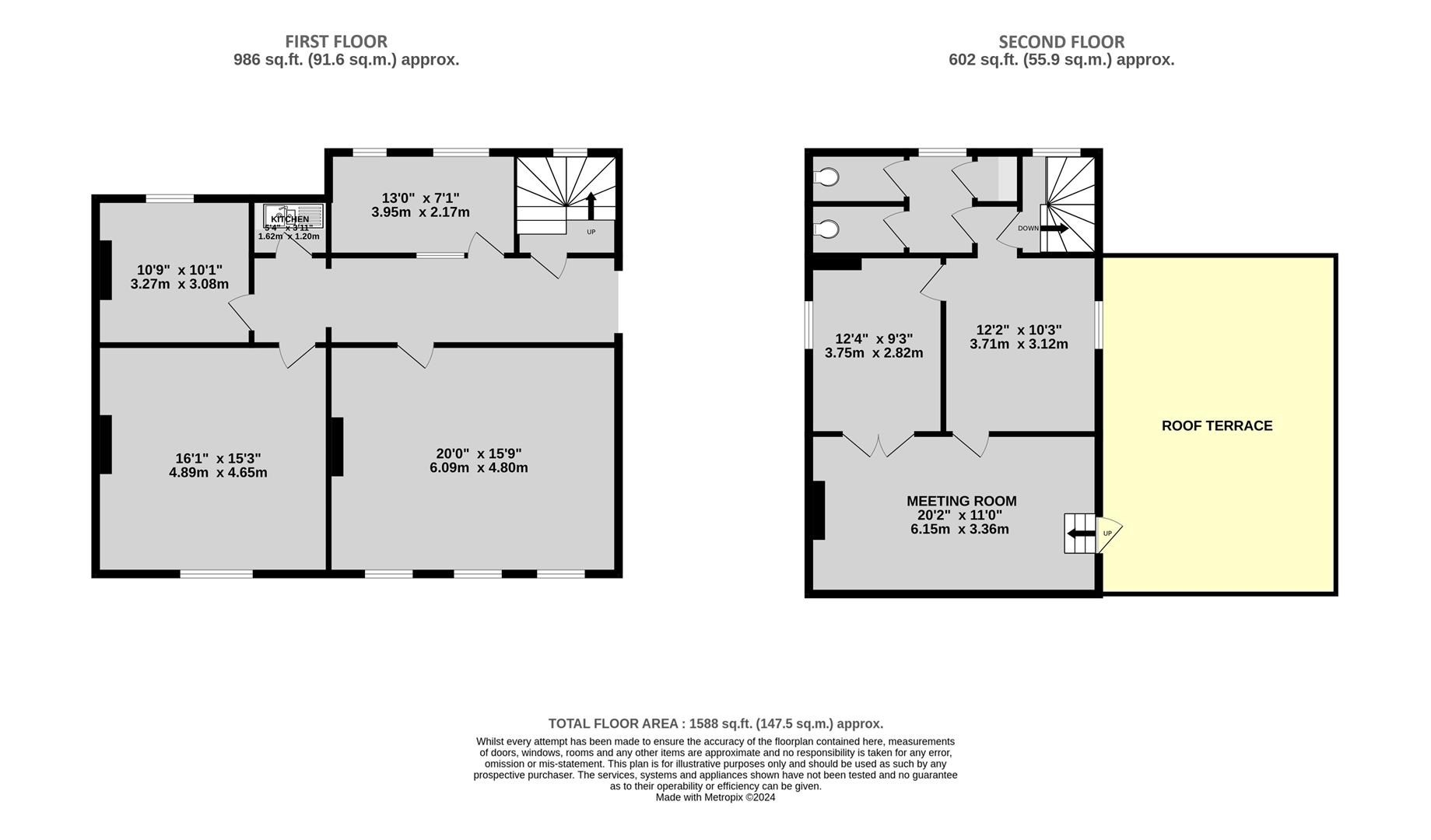 Second Floor: Approx. 450 ft² (plus roof terrace).