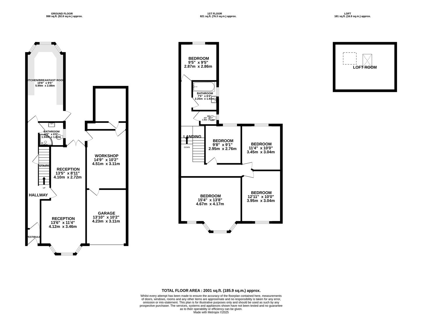 From Raleigh Road, a short driveway with double iron gates leads to the garage, and a pathway leads to the front door. A motorised up-and-over door opens directly into a spacious, tandem garage with light and power and workshop to the rear, and side door into the rear garden.