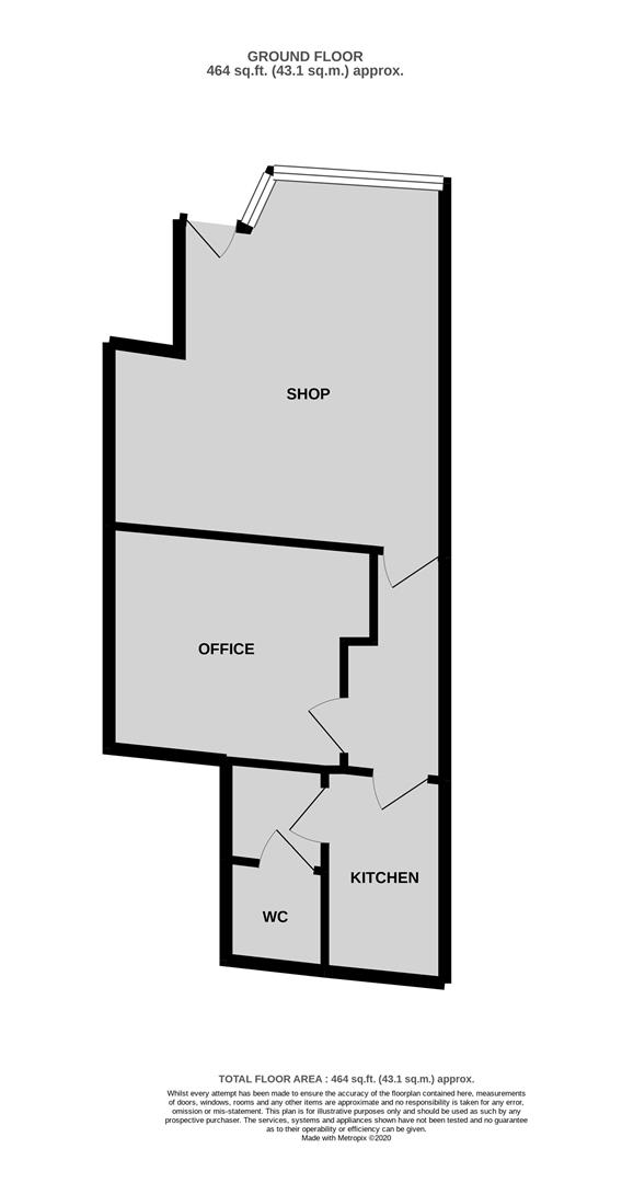 Terraced shop of approximately 465 sq ft arranged as main reception/shop with rear office, kitchen, wc and shower. Benefits include a secure roller shutter to the front and suspended office ceilings.
