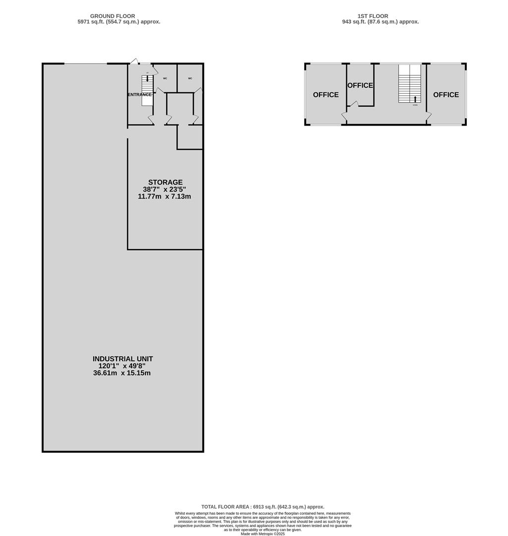 This well presented industrial unit spans approximately 6,913 sq ft in total, offering a functional and versatile space suitable for a range of industrial purposes. The property features a generously sized ground floor warehouse area, covering around 5,971 sq ft. This area includes ample storage space, along with toilet facilities.