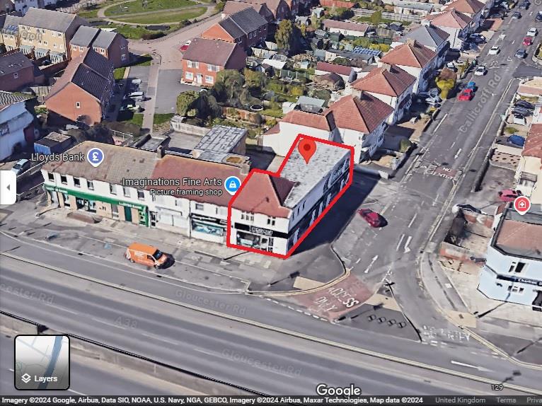 The property is situated in a highly visible corner position on Gloucester Road in Patchway (A38). This strategic setting not only enhances its visibility but also provides convenient access to the M4 motorway, making it an ideal choice for businesses seeking exposure and accessibility. With the M4 just a short distance away, commuting and transportation logistics are greatly simplified, allowing for seamless connections to major hubs in the region. This location is well-suited for a variety of commercial ventures, benefiting from both passing traffic and vehicular access.