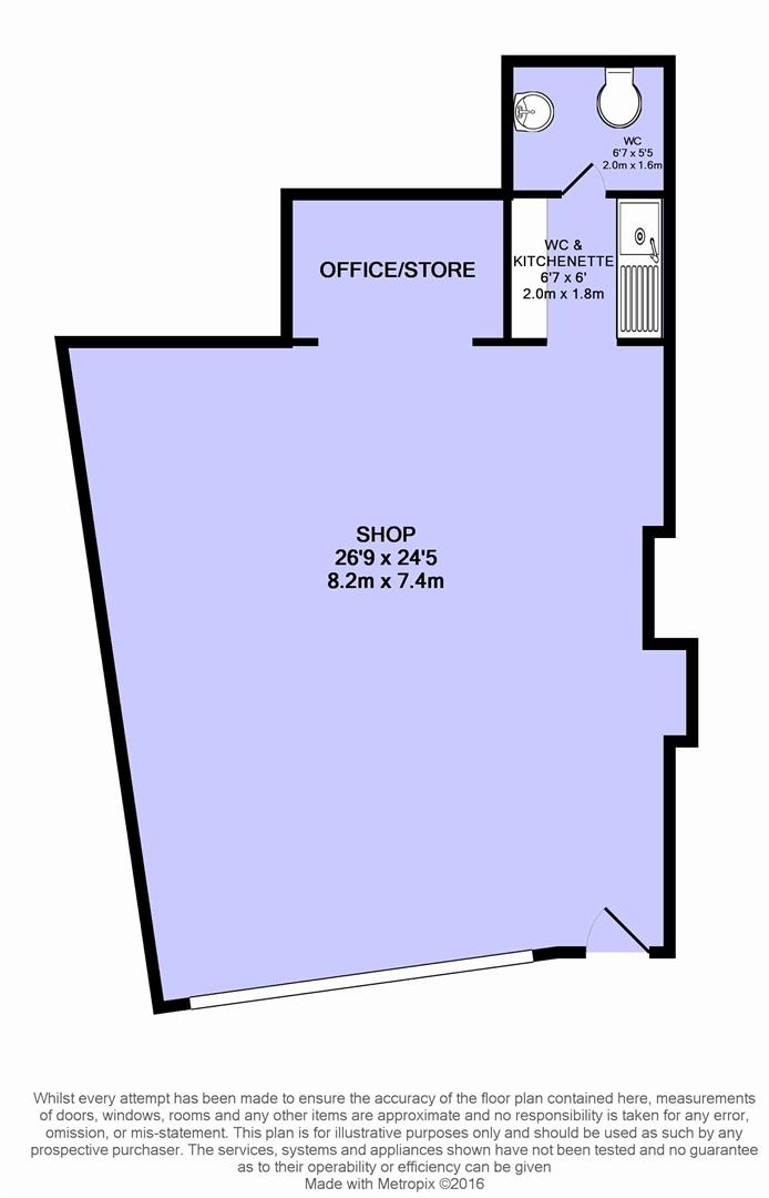 A ground floor retail unit of approximately 690 ft² arranged as an open plan shop area with rear storage, kitchenette and WC.