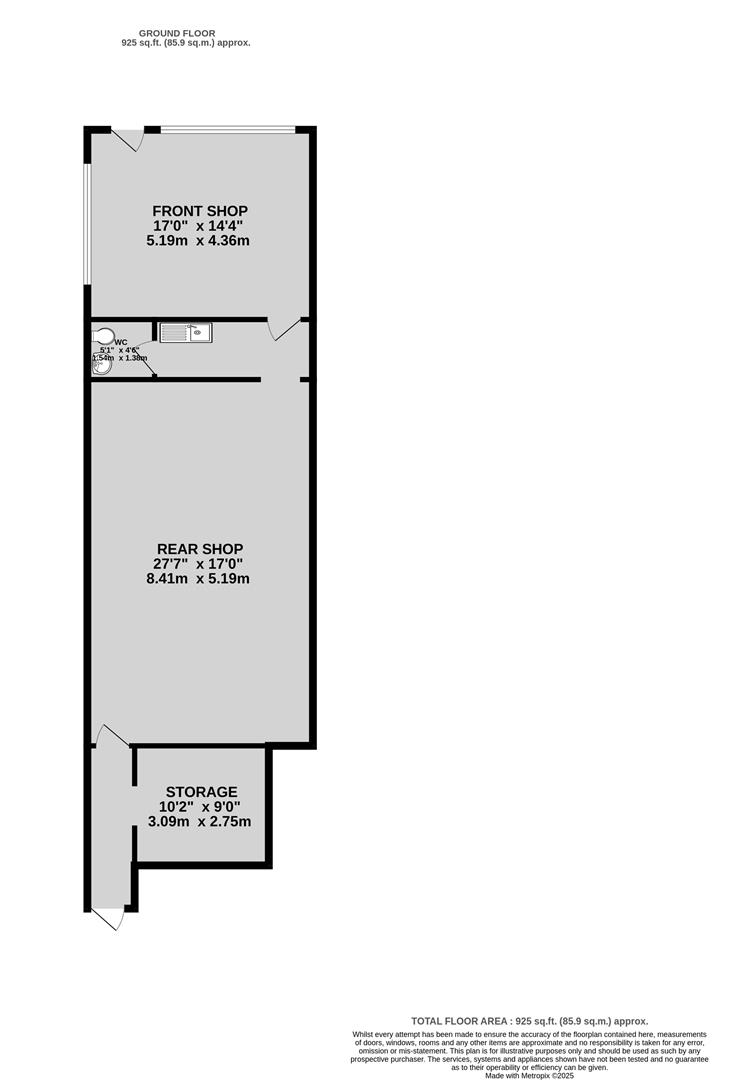 A ground floor retail unit of approximately 925 sq ft, comprising an open plan front and rear shop area, with a separate toilet and storage space. The premises benefits from security shutters and rear access. The space is well suited for a range of uses, subject to consent.
