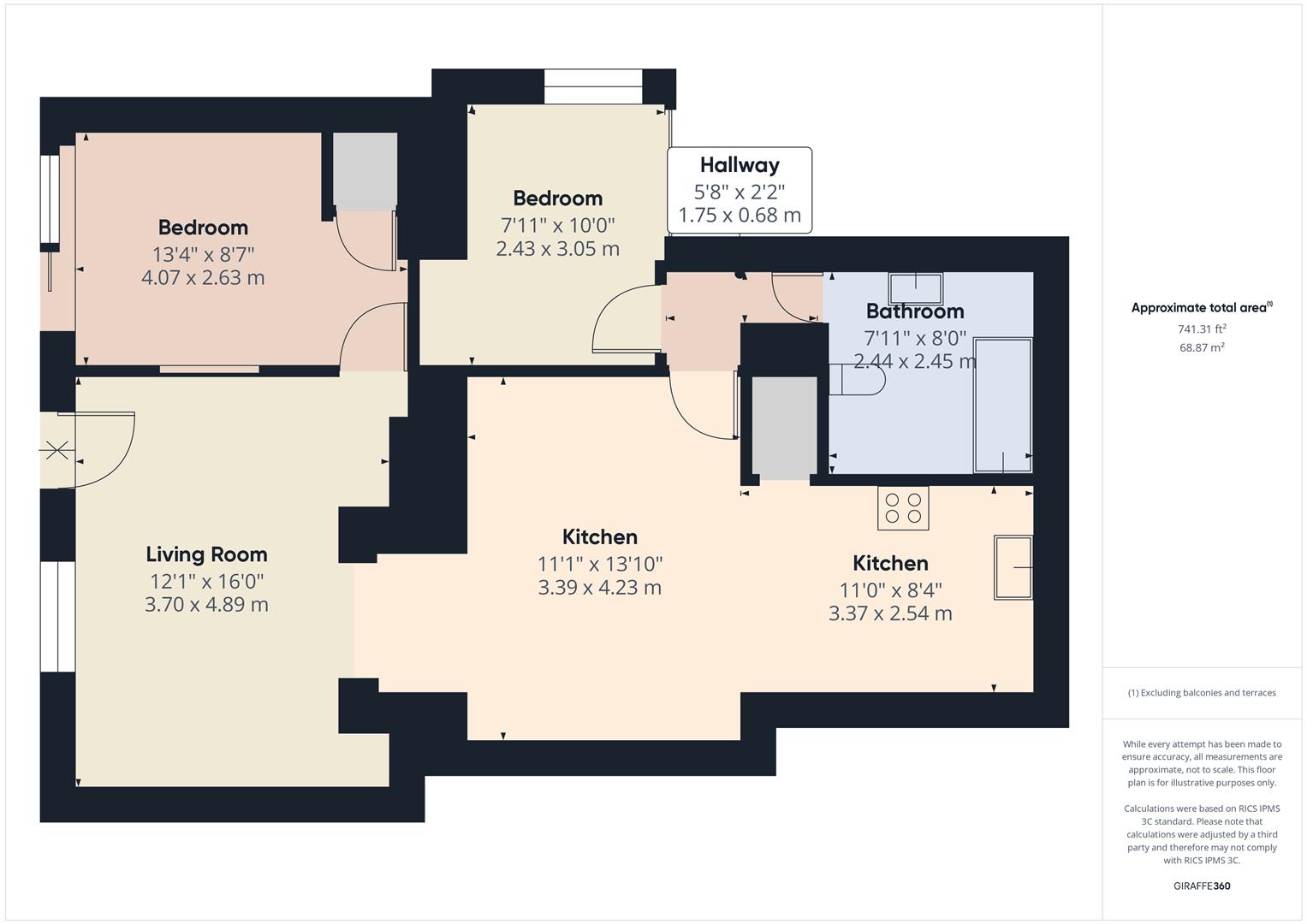This spacious flat comprises large open plan living/dining room that leads to the kitchen area. There are 2 double bedrooms and a bathroom.