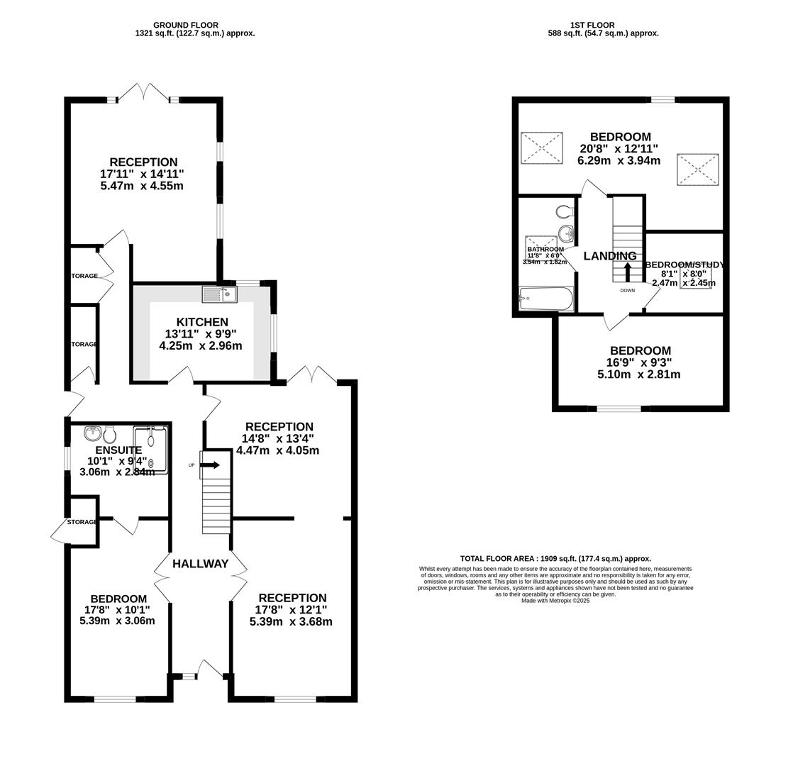 Ascending to the first floor you will find two double bedrooms, both of which are a good size; a three-piece bathroom with WC, basin and bath; and completing this level is another room that is currently used as a home office/study.