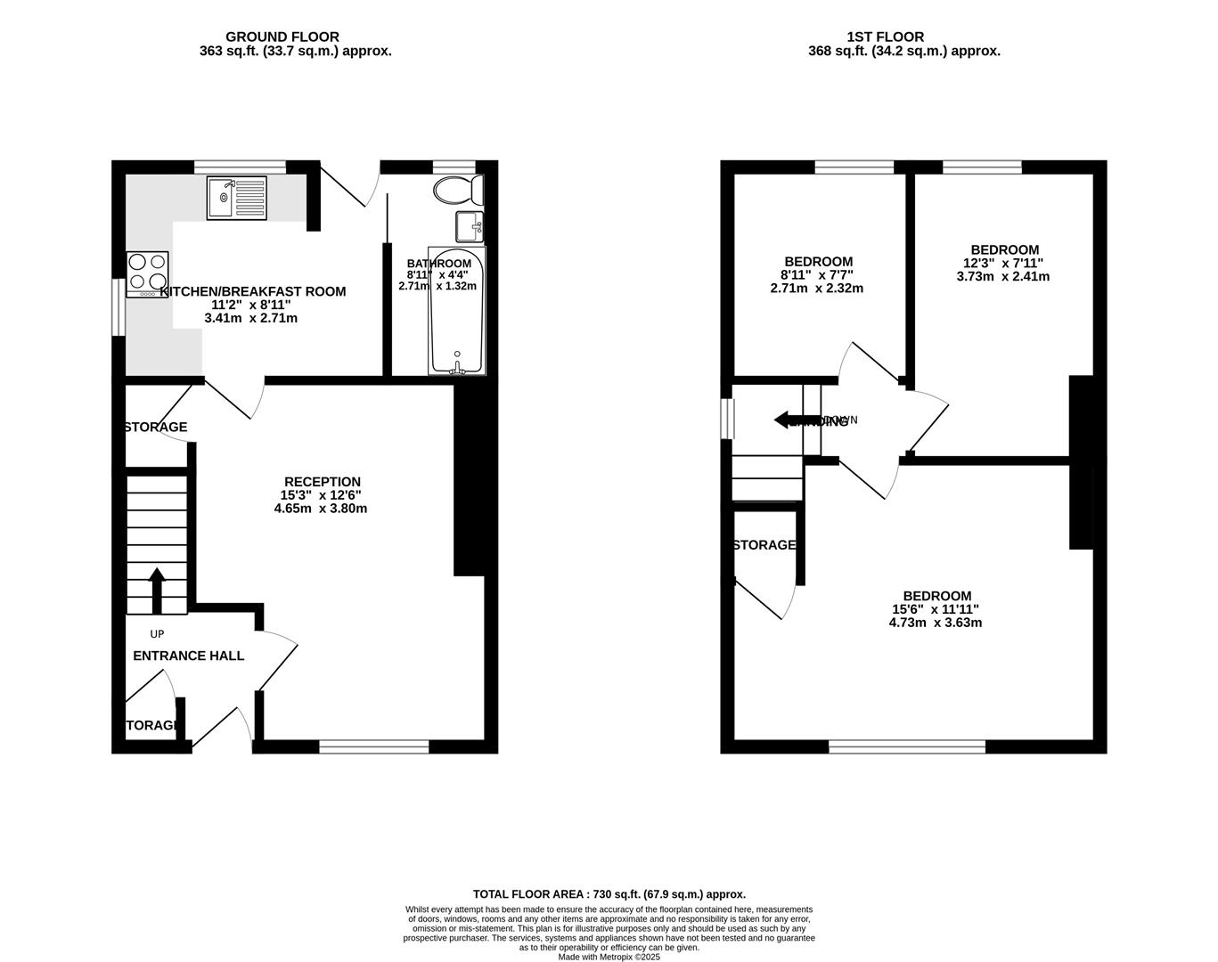 The first floor features three well-proportioned bedrooms. The main bedroom is a spacious double that spans the width of the house and includes a fitted storage cupboard. A second double bedroom and a good-sized single bedroom - ideal for a home office or study - complete this level.