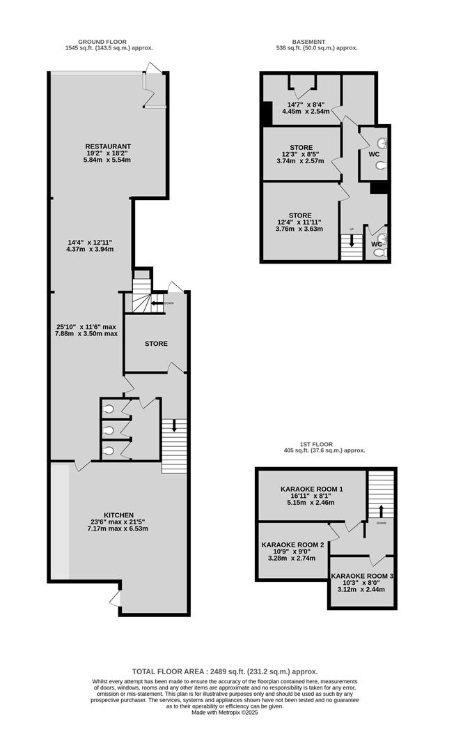 Approx. 538 ft² (50m²) providing further former karaoke rooms and stores and toilet facilities.