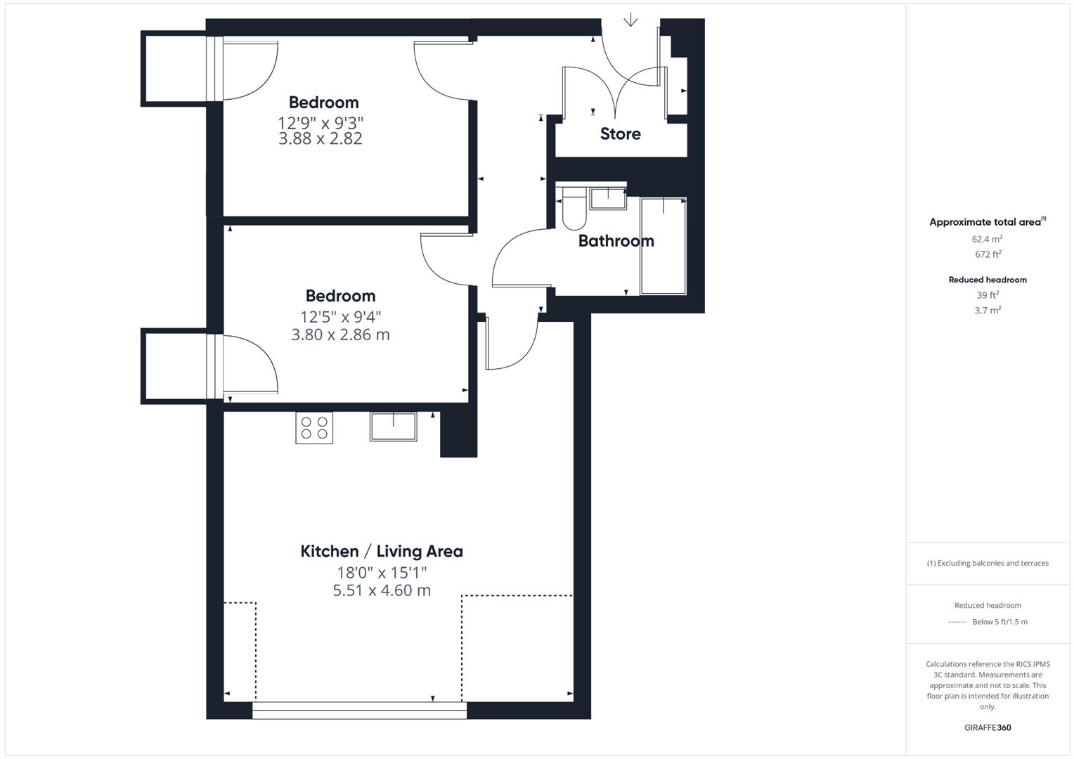 The top floor apartment comprises a generous open-plan kitchen, dining and living room which is flooded with natural light by the expansive glazing. There are two well-proportioned double bedrooms, each with their own private balconies overlooking the river. The bathroom is fully tiled with a modern white suite and there is ample storage space.