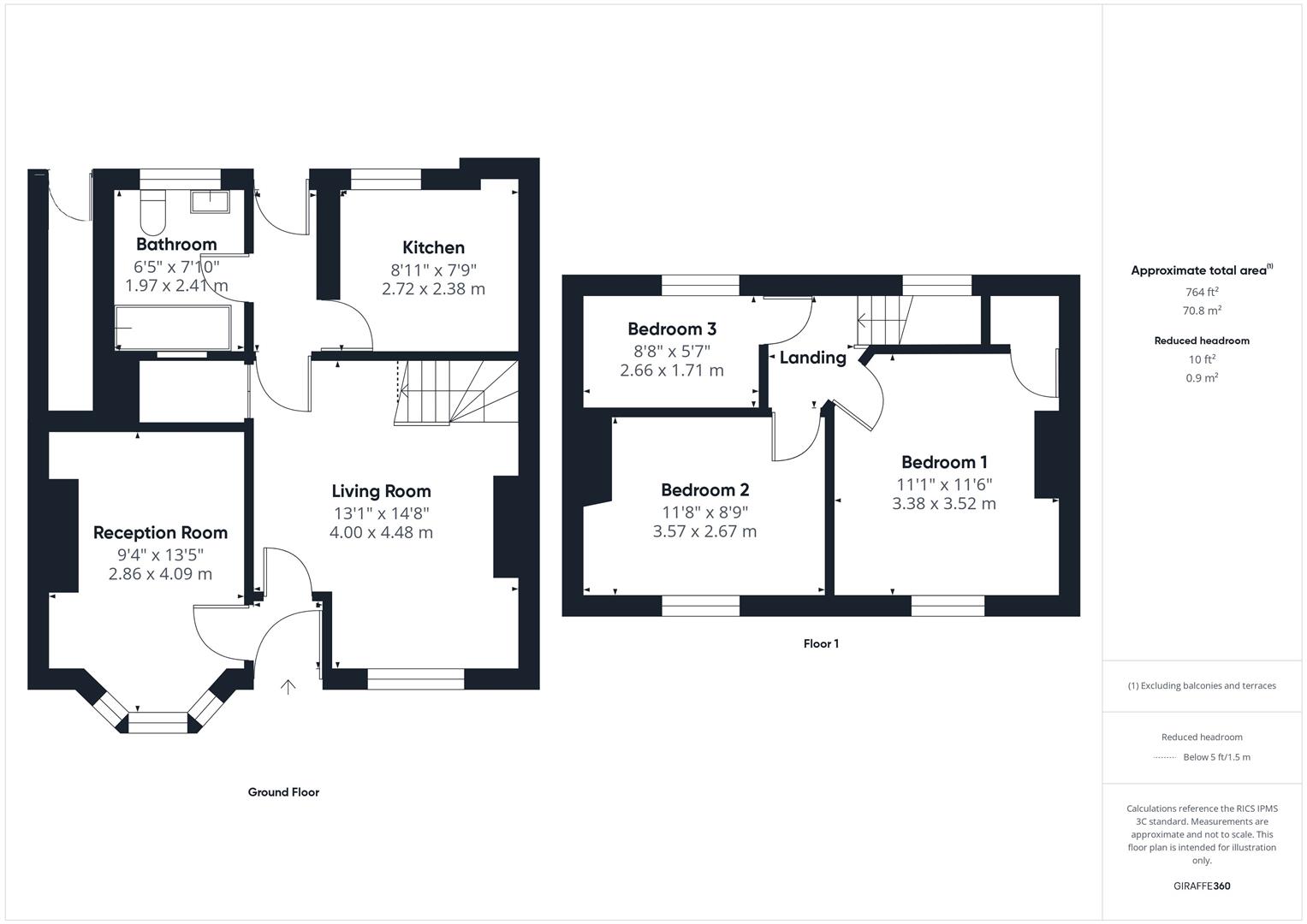 The ground floor comprises an entrance hall, two reception rooms, a kitchen and bathroom. On the first floor are three bedrooms.