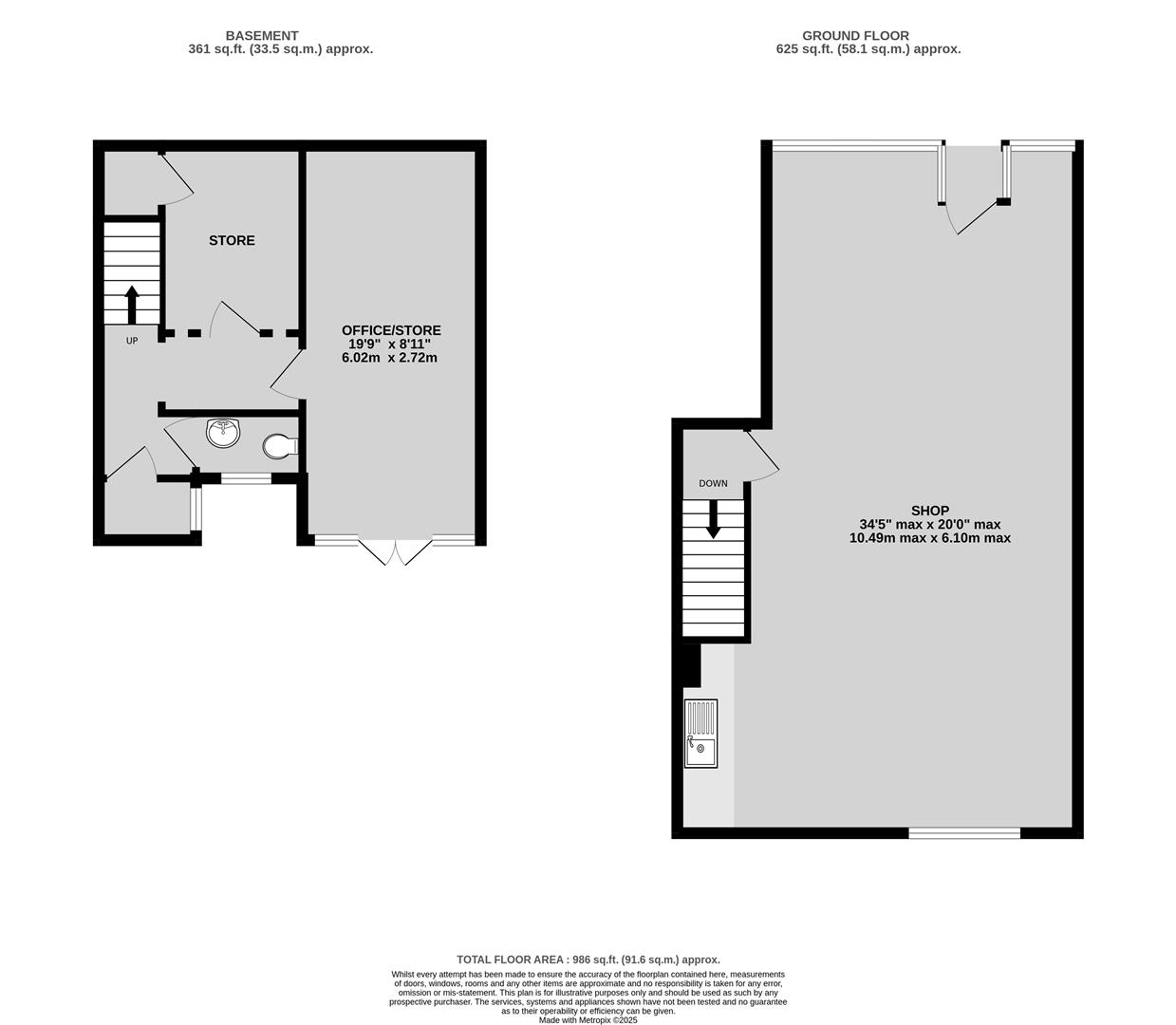 An end of terrace shop of approximately 986 ft² arranged over ground floor (approx. 625 ft²) with additional basement stores and wc. The shop has gas central heating, kitchen and toilet facilities and electric roller security shutter .