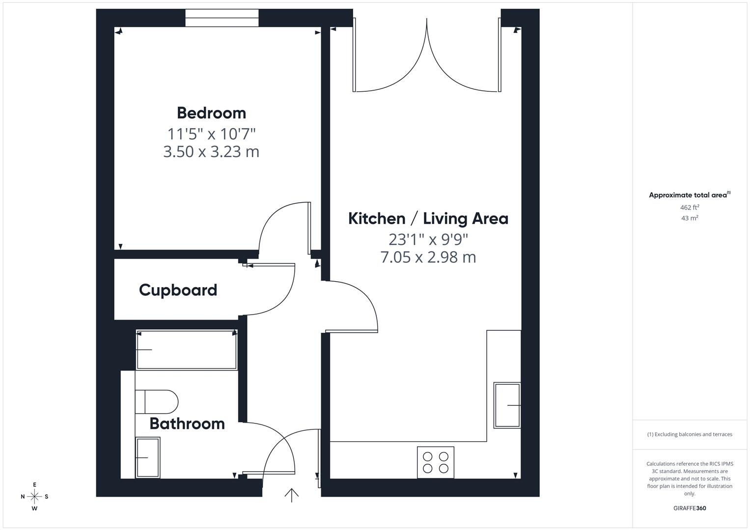 The apartment is well presented throughout and comprises an open-plan kitchen/living area with a Juliet balcony, a generous double bedroom, and a contemporary bathroom.
