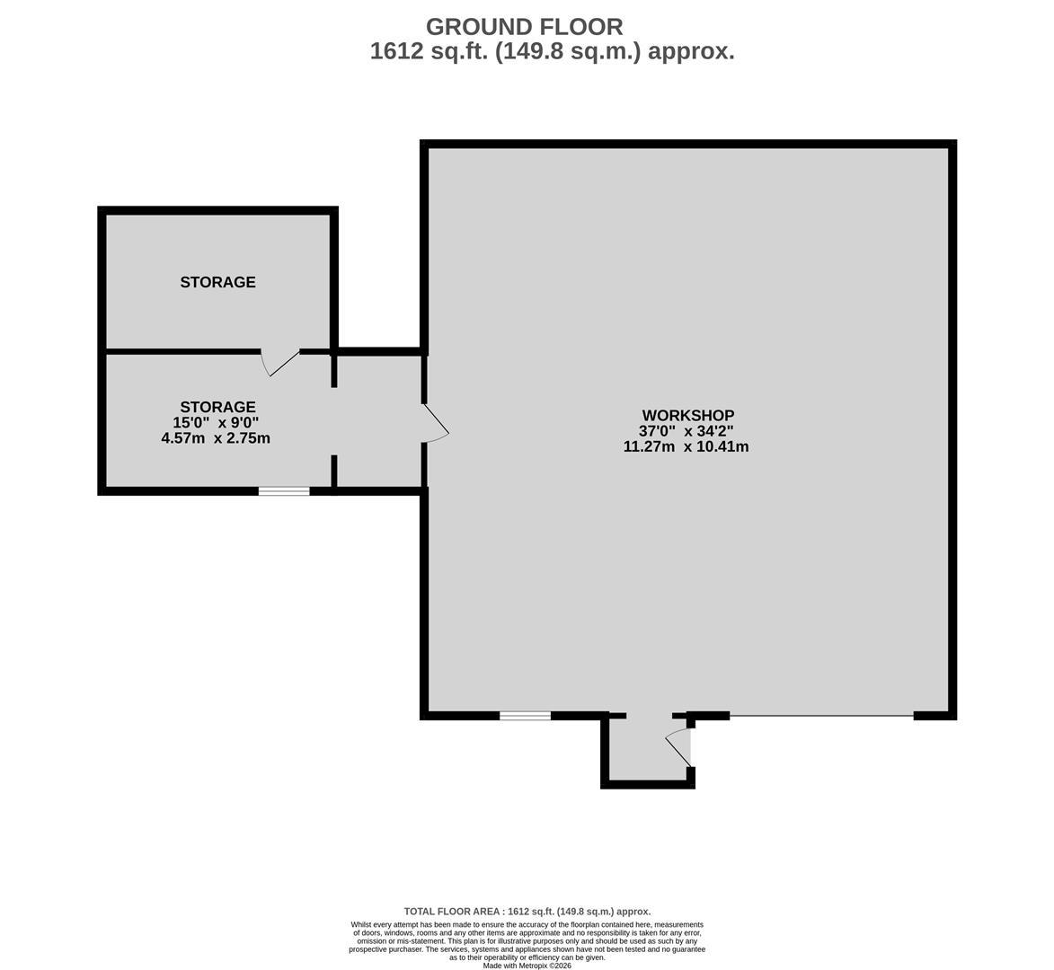 Light industrial unit extending to approximately 1,612 sq ft, configured to provide predominantly open plan workshop accommodation complemented by a separate adjoining storage area. The layout offers flexibility for a range of industrial or trade uses, allowing occupiers to adapt the space to suit operational requirements.